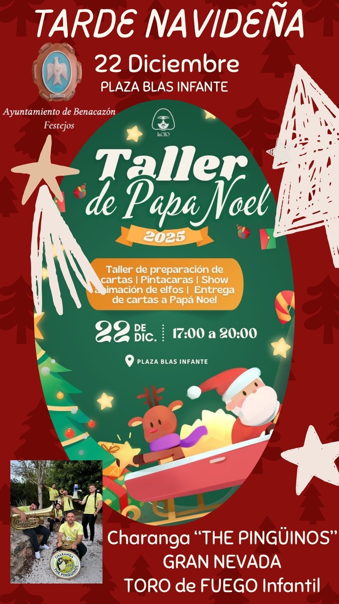 "FIESTA DE PAPÁ NOEL" CON TALLERES. CHARANGA "THE PINGÜINOS". GRAN NEVADA y TORO FUEGO INFANTIL