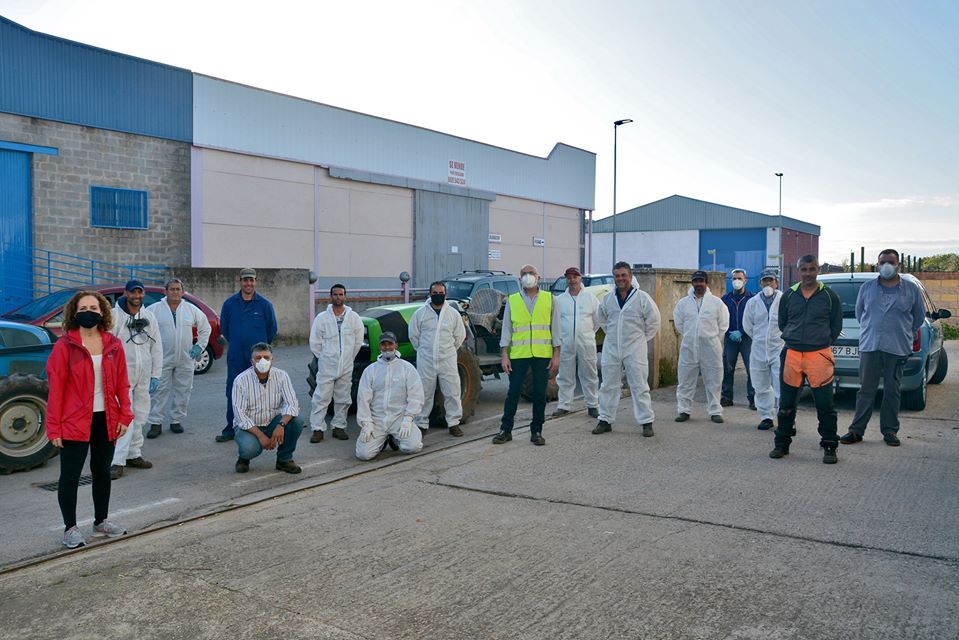 Además de incluir varias fotografías de grupo realizadas justo antes de algunas de las batidas, desde estas líneas deseamos nombrar a todas las personas que han puesto a disposición del Ayuntamiento sus tractores y maquinaria, aquellas que han dedicado su experiencia, su tiempo y su esfuerzo fumigando calles y plazas, así como a nuestros operarios municipales, también parte imprescindible en las tareas de desinfección:
