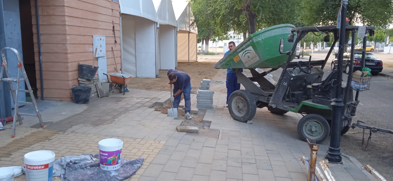 Las Delegaciones municipales de Festejos, Obras y Servicios del Ayuntamiento de Benacazón se hallan estos días realizando los trabajos y preparativos del recinto ferial -trabajos coordinados por Los Concejales de ambas áreas, Diego Perejón (Festejos) y Manuel Ortiz (Obras y Servicios)-, y que se centran en los días previos a las fiestas en tareas de limpieza, pintura, poda, instalaciones eléctricas y demás equipamiento de calles y casetas.