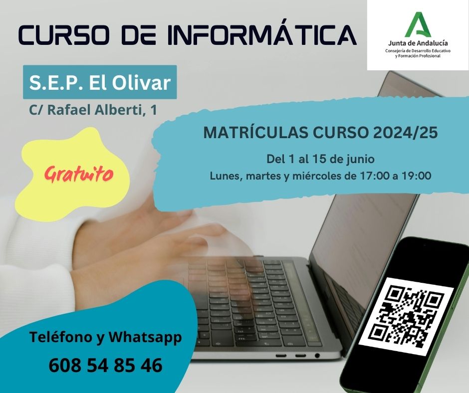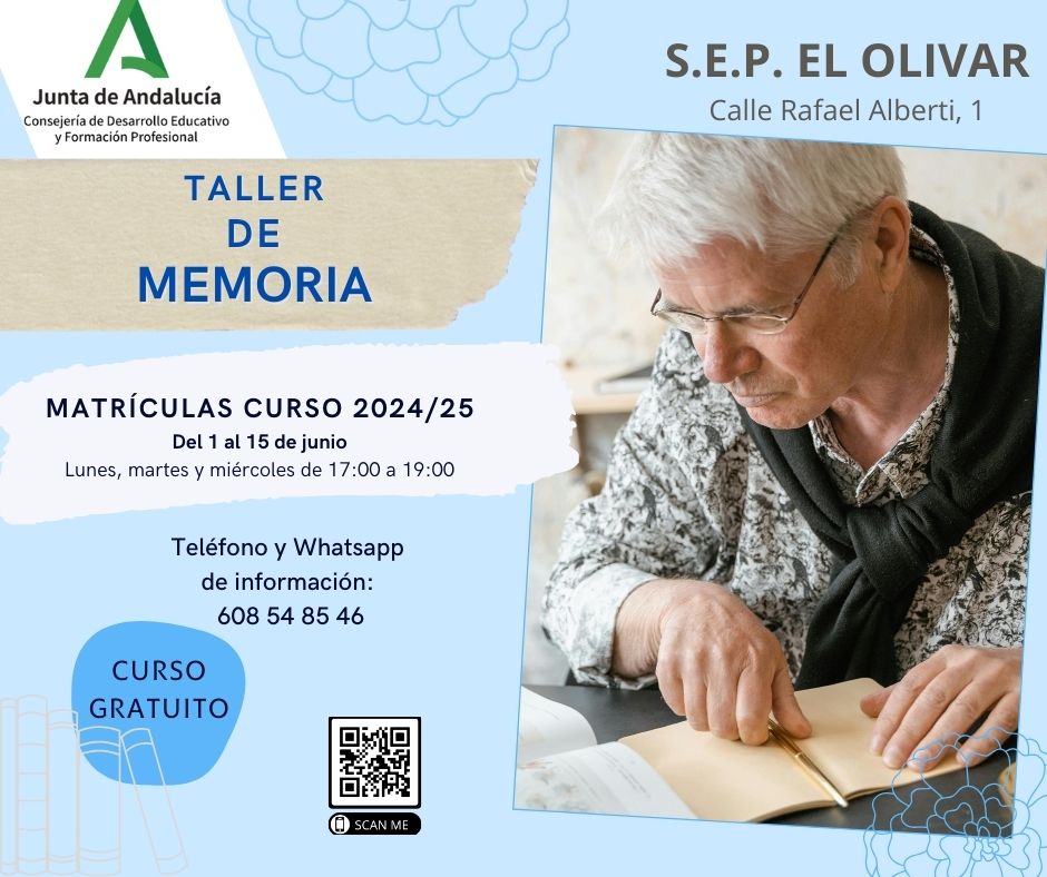 OFERTA EDUCATIVA CURSO 2024/25 CENTRO ADULTOS "EL OLIVAR": PREPARACIÓN E.S.O., TALLERES DE "MEMORIA", "INFORMÁTICA" Y "CRECE" (HÁBITOS DE VIDA SALUDABLE)