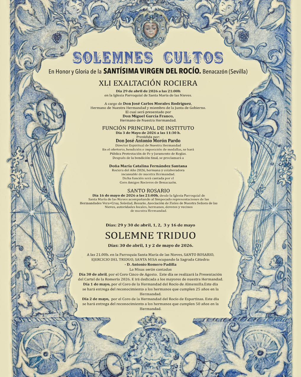 SOLEMNES CULTOS 2026 HDAD. DEL ROCÍO DE BENACAZÓN