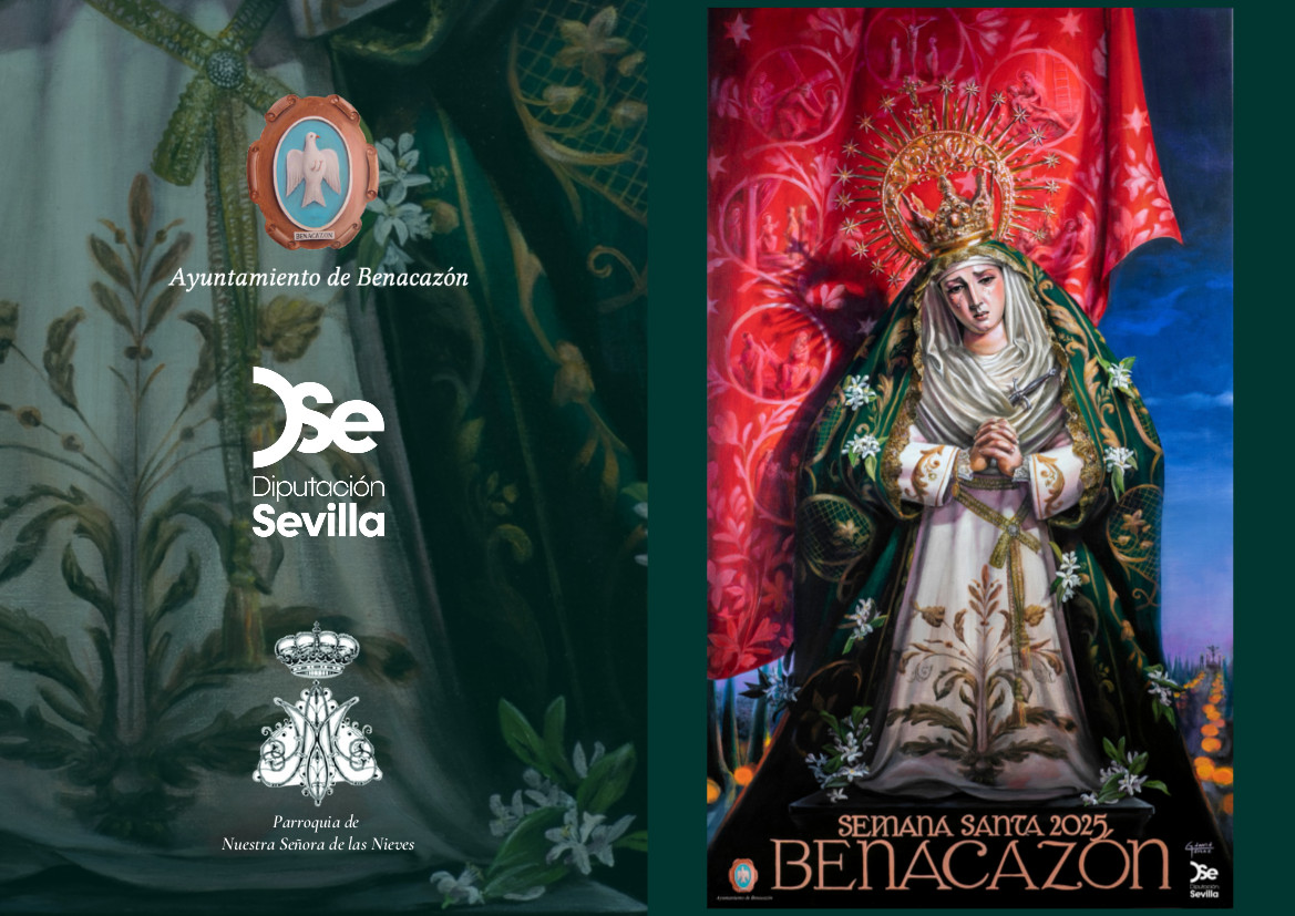 *El Cartel anunciador de nuestra Semana Santa 2025, tiene como protagonista a María Santísima de los Dolores, una obra pictórica realizada por el artista DAVID GÓMEZ LÓPEZ (natural de Mairena del Alcor) que, siguiendo la alternancia de carteles establecida entre las Hermandades de penitencia de nuestro pueblo, este año corresponde a la Hermandad Vera+Cruz Benacazón.