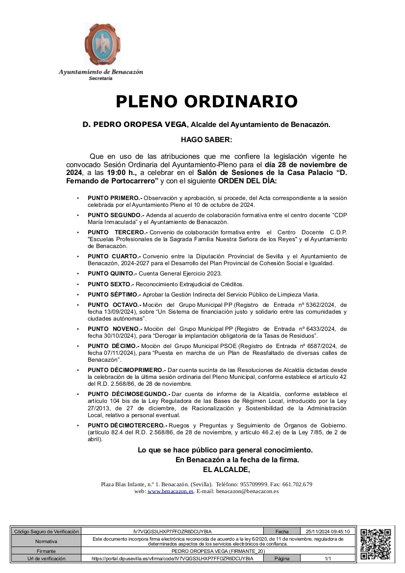 BANDO Y ACTA PLENO ORDINARIO 28.11.2024