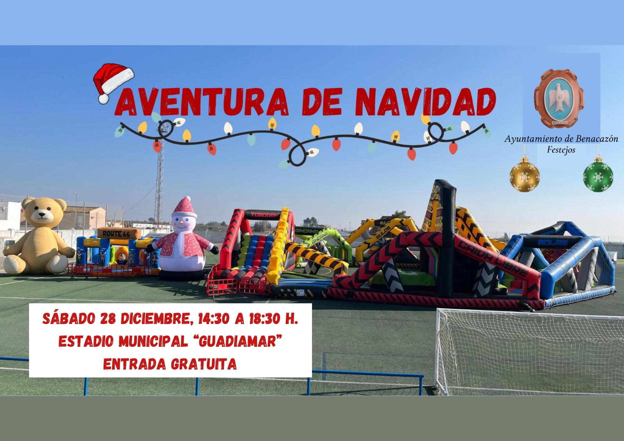 El Ayuntamiento de Benacazón informa de la AVENTURA DE NAVIDAD CON HINCHABLES que tendrá lugar el Sábado 28 de Diciembre, de 14:30 a 18:30 h. en el Estadio Municipal "Guadiamar", con ENTRADA GRATUITA.
