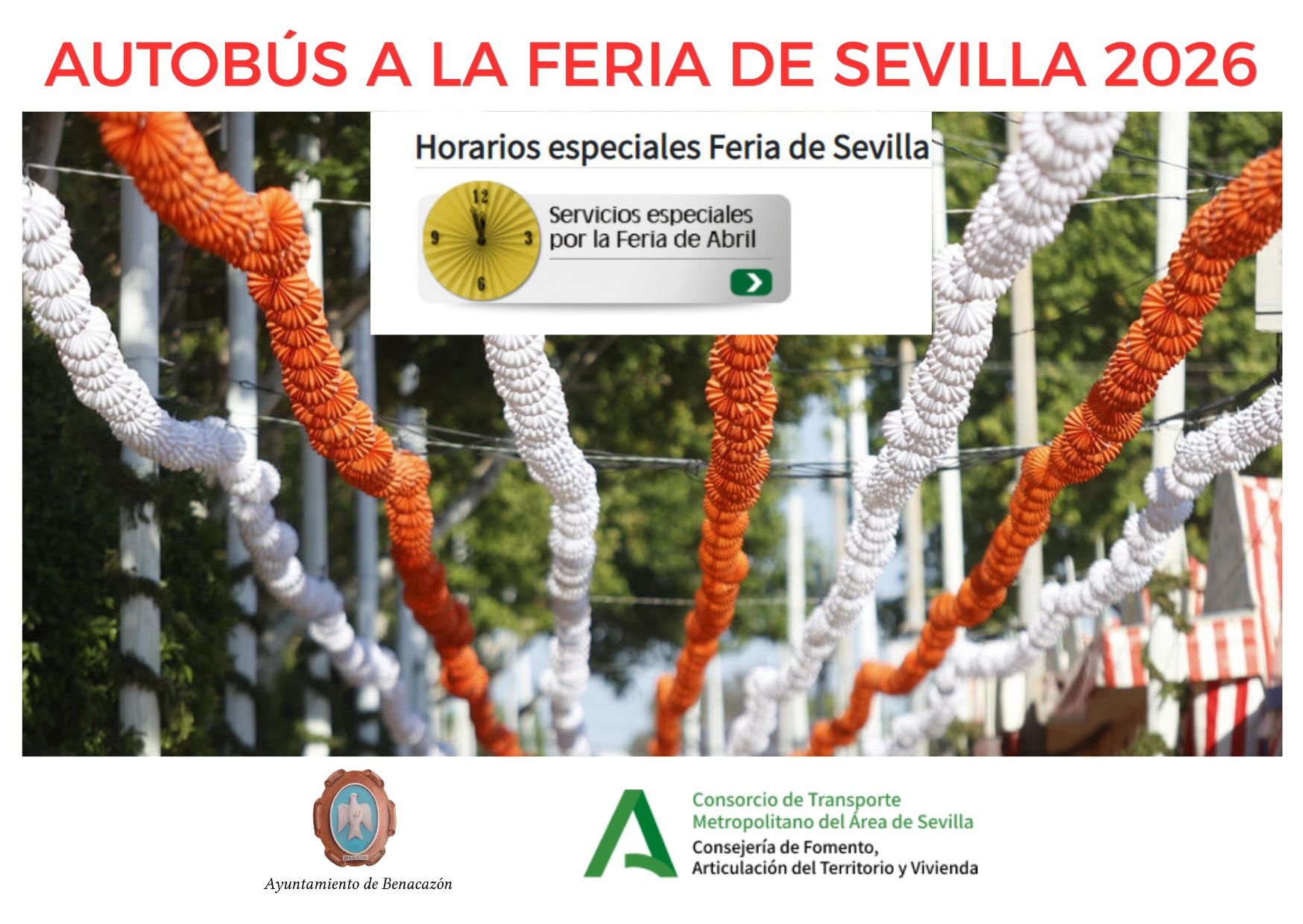 SERVICIO ESPECIAL DE AUTOBÚS DIRECTO DESDE BENACAZÓN A LA "FERIA DE SEVILLA 2026": desde Lunes 20 al Sábado 25 de Abril