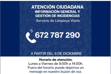 TELÉFONO DE INFORMACIÓN Y GESTIÓN DE INCIDENCIA DE LA EMPRESA DEL SERVICIO DE LIMPIEZA VIARIA (CAPROSS): "672 787 290"
