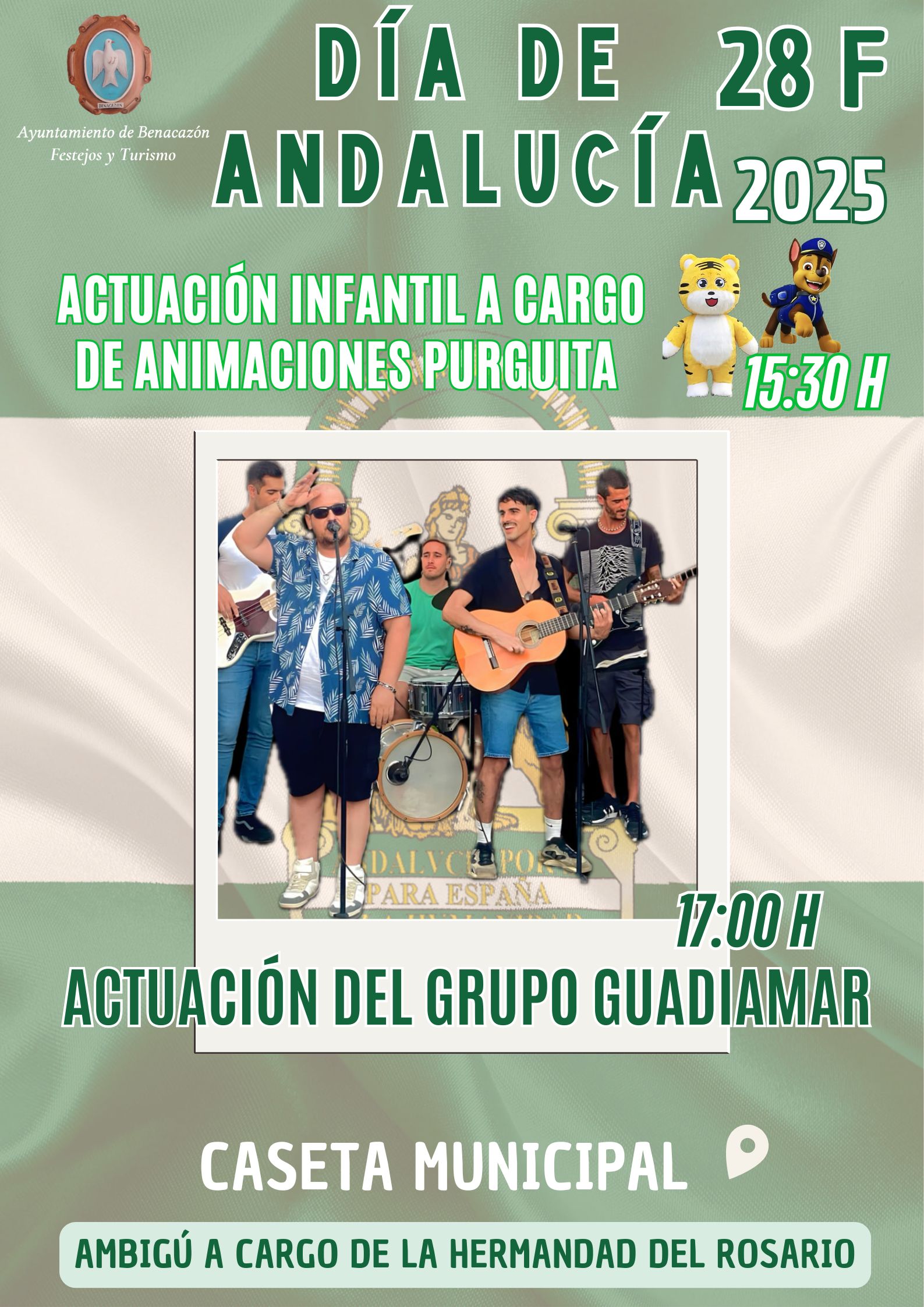 - A las 17:00 h. Caseta Polivalente, disfrutaremos del CONCIERTO DEL GRUPO GUADIAMAR.