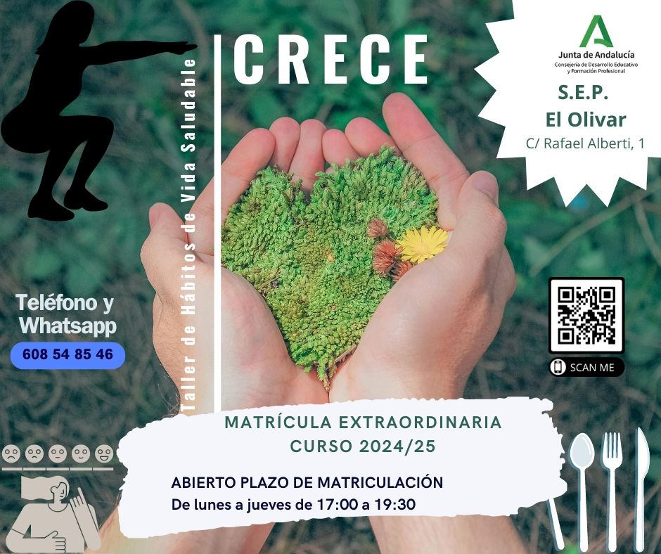 ABIERTO PLAZO MATRICULACIÓN CENTRO EDUCACIÓN PERMANENTE DE ADULTOS "EL OLIVAR": PREPARACIÓN E.S.O. Y TALLER DE HÁBITOS DE VIDA SALUDABLE "CRECE"