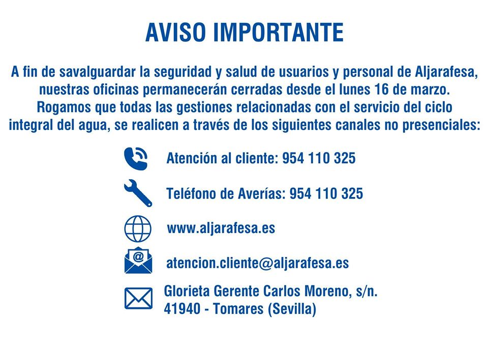 ALJARAFESA ESTABLECE SERVICIOS DE ATENCIÓN AL PÚBLICO NO PRESENCIALES