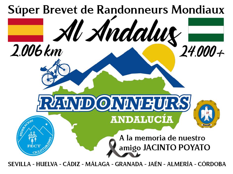 Será la IV EDICIÓN de esta Súper Brevet Randonneurs Mondieux que en esta ocasión se va a realizar en sentido contrario al de las ediciones anteriores, siendo el lugar de salida Benacazón, gracias a la importante aportación de la Concejalía de Deportes del Ayuntamiento, que pondrá a disposición de esta prueba toda la logística necesaria para dar acogida al punto inicial y final de la SÚPER BREVET AL ÁNDALUS RANDONNEURS.