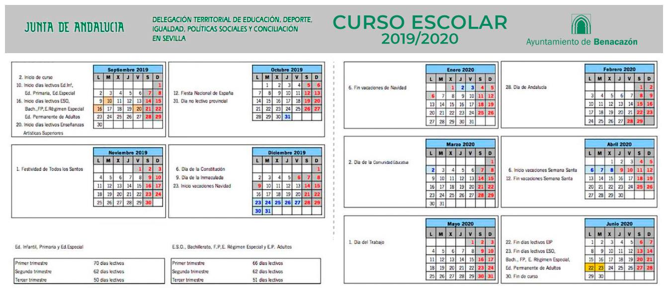 ¡BIENVENIDOS AL COLE! CONSULTA EL CALENDARIO ESCOLAR DE LA PROVINCIA 2019/20
