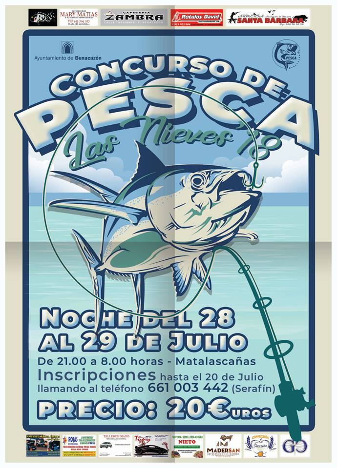CONCURSO DE PESCA LAS NIEVES 2018 EN LA PLAYA DE MATALASCAÑAS DESDE LAS 21:00 H. DEL SÁBADO 28 DE JULIO HASTA LAS 8:00 DEL DOMINGO 29. INSCRIPCIÓN HASTA EL 20 DE JULIO ABIERTA A TODOS LOS INTERESADOS EN ESTA ACTIVIDAD