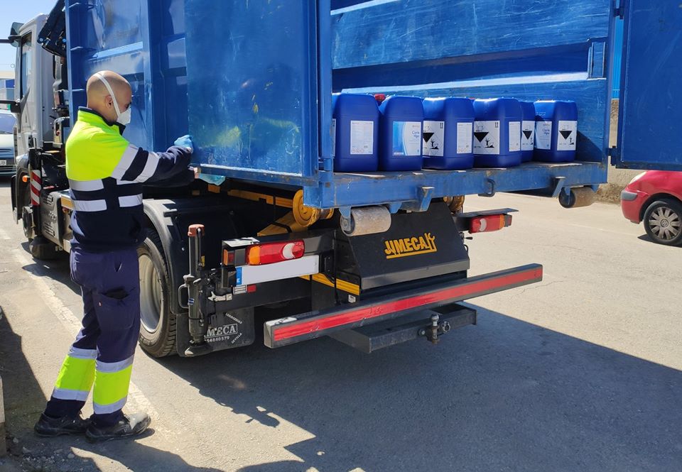 Esta cantidad se une a 320 litros ya cedidos por este mismo organismo, a los 360 adquiridos por el Ayuntamiento y a las donaciones de instituciones públicas y privadas, sumando en total más de 1.000 litros. Este material se dedica a la desinfección que diariamente realizan los operarios municipales a través de la barredora, mochilas y otra maquinaria disponible, así como por los tractores de los agricultores que solidariamente han higienizado el municipio en tres ocasiones.