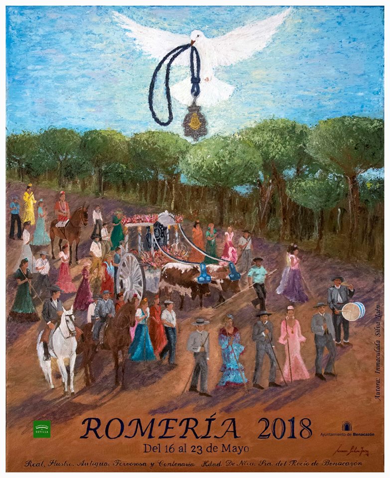 Desde el Ayuntamiento de Benacazón te informamos sobre el cartel de la Romería 2018 de nuestra Hermandad del Rocío (que se celebra del 16 al 23 de Mayo). Este cartel reproduce la obra de Inmaculada Silva y ha sido impreso por la Diputación de Sevilla a petición del Área de Cultura del Ayuntamiento de Benacazón.