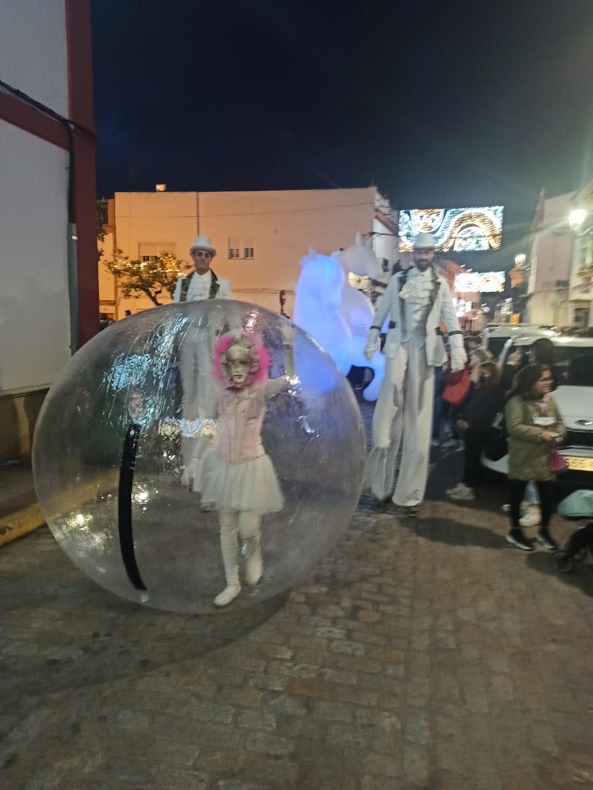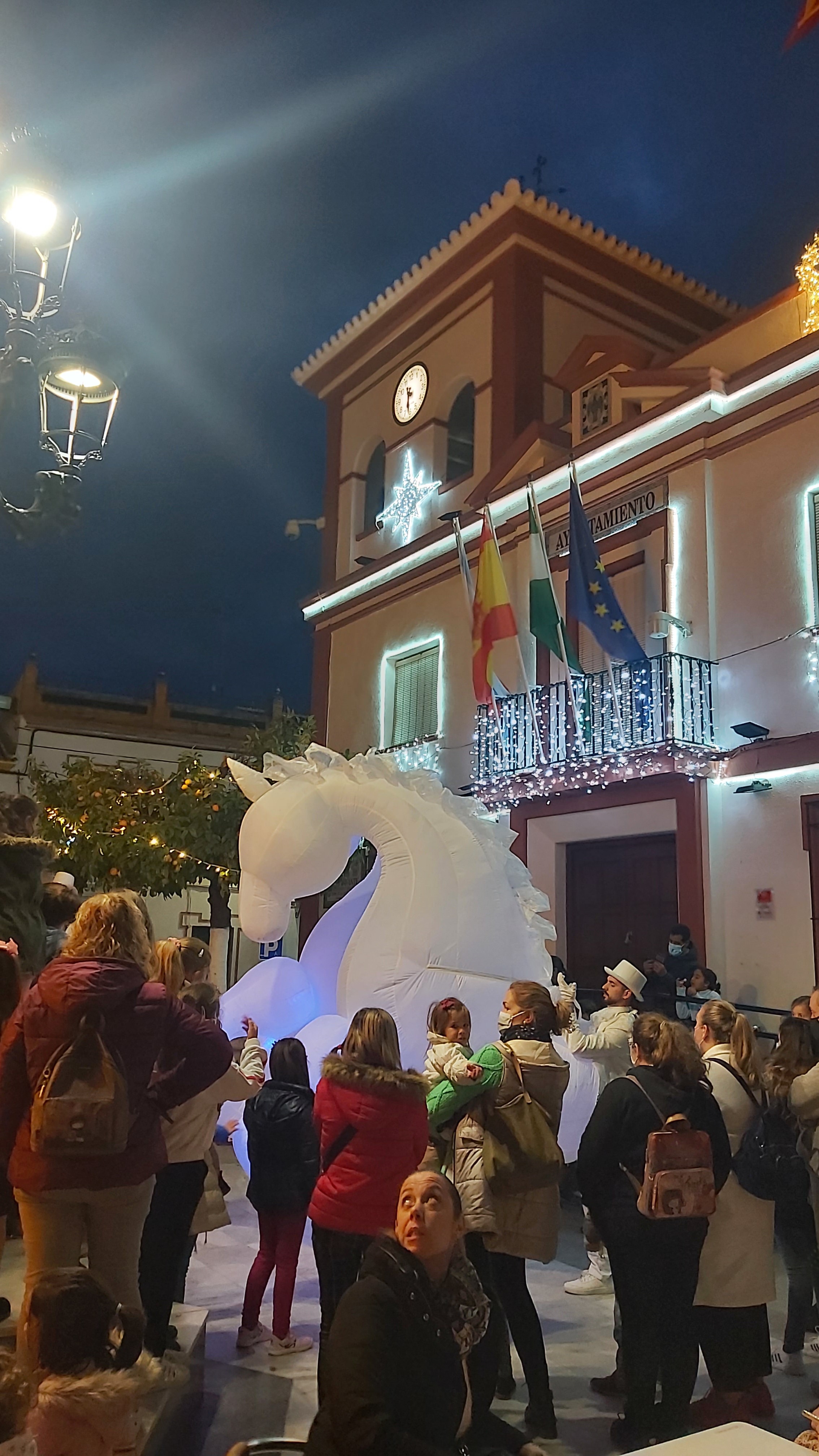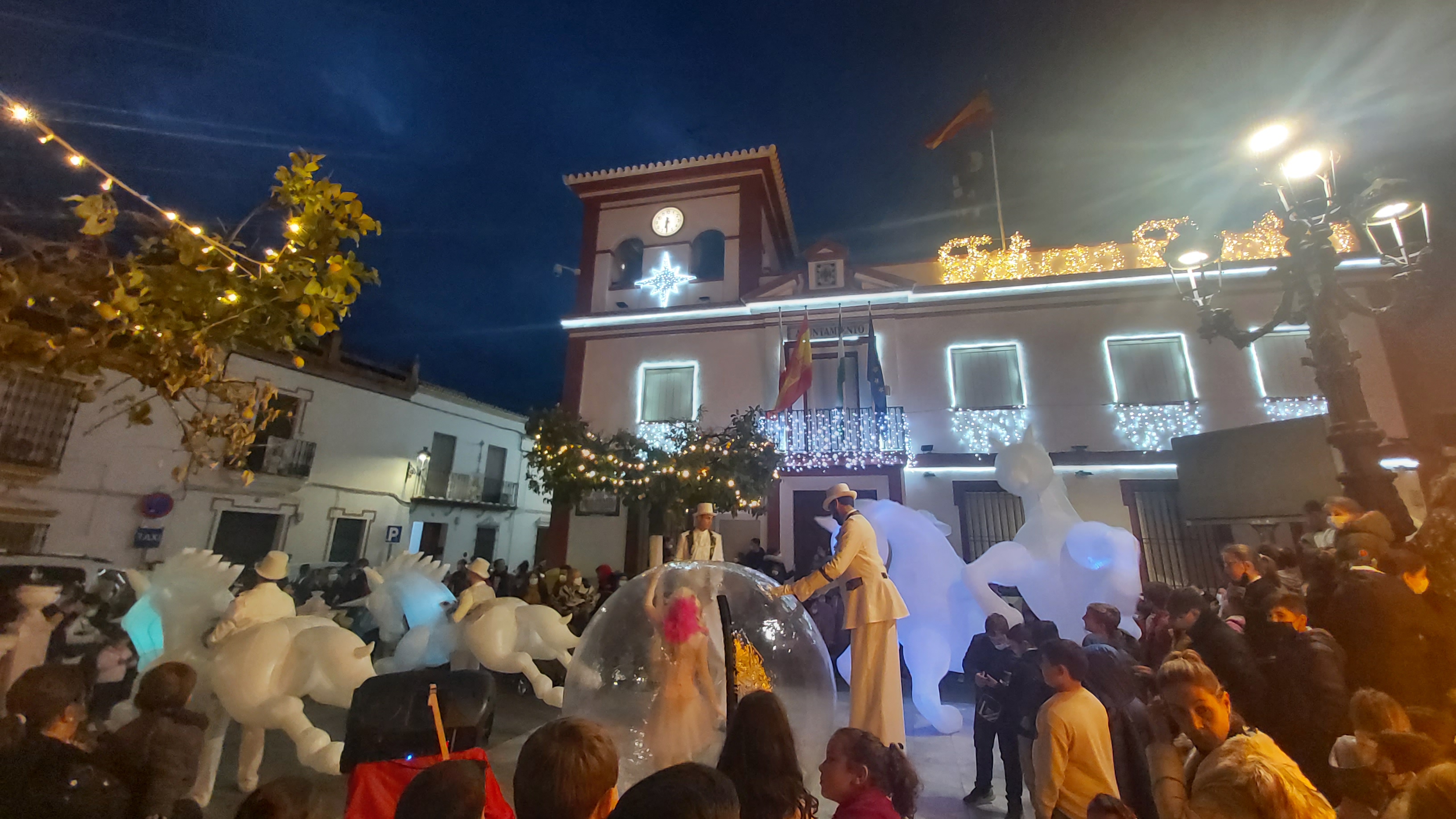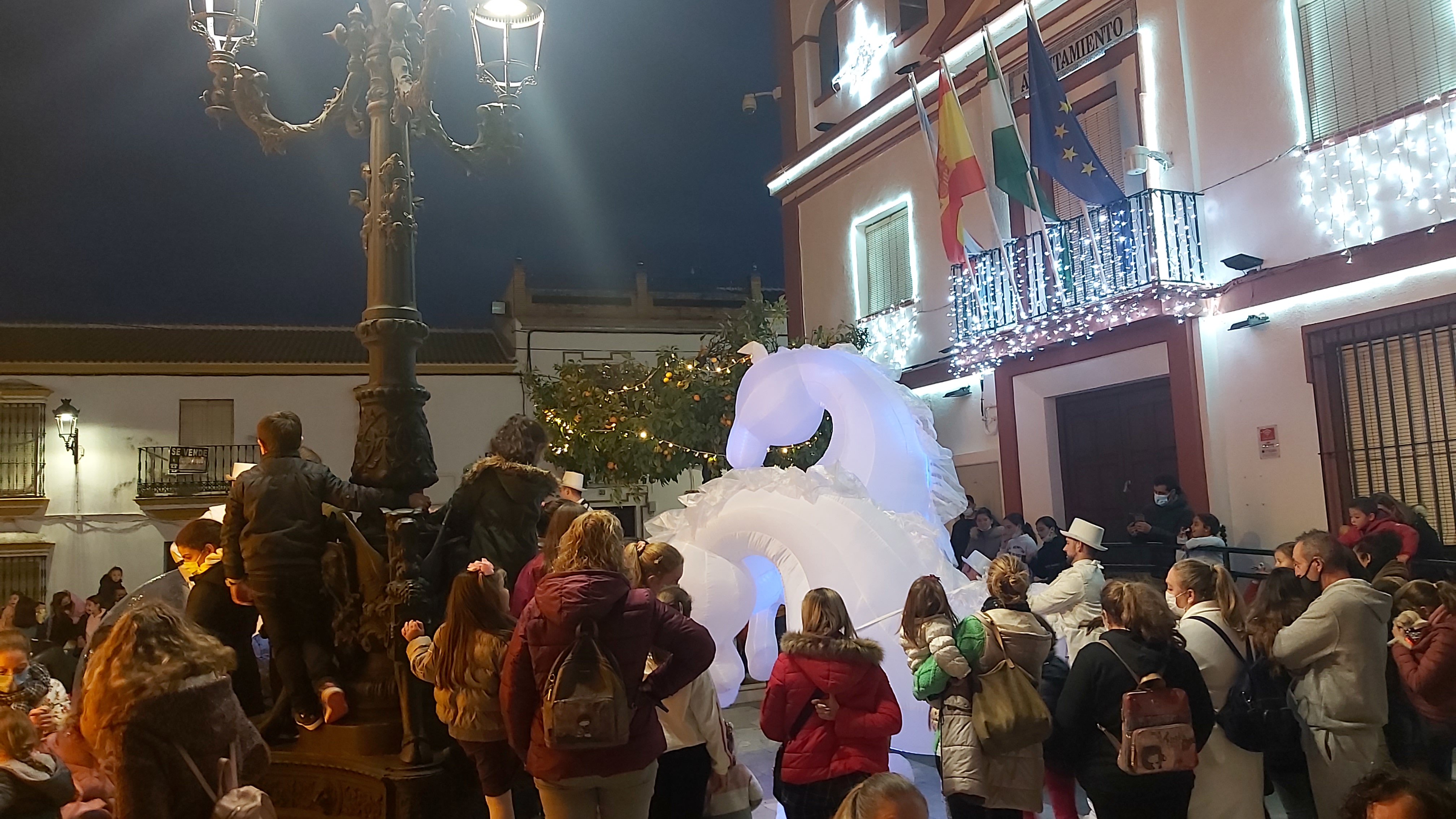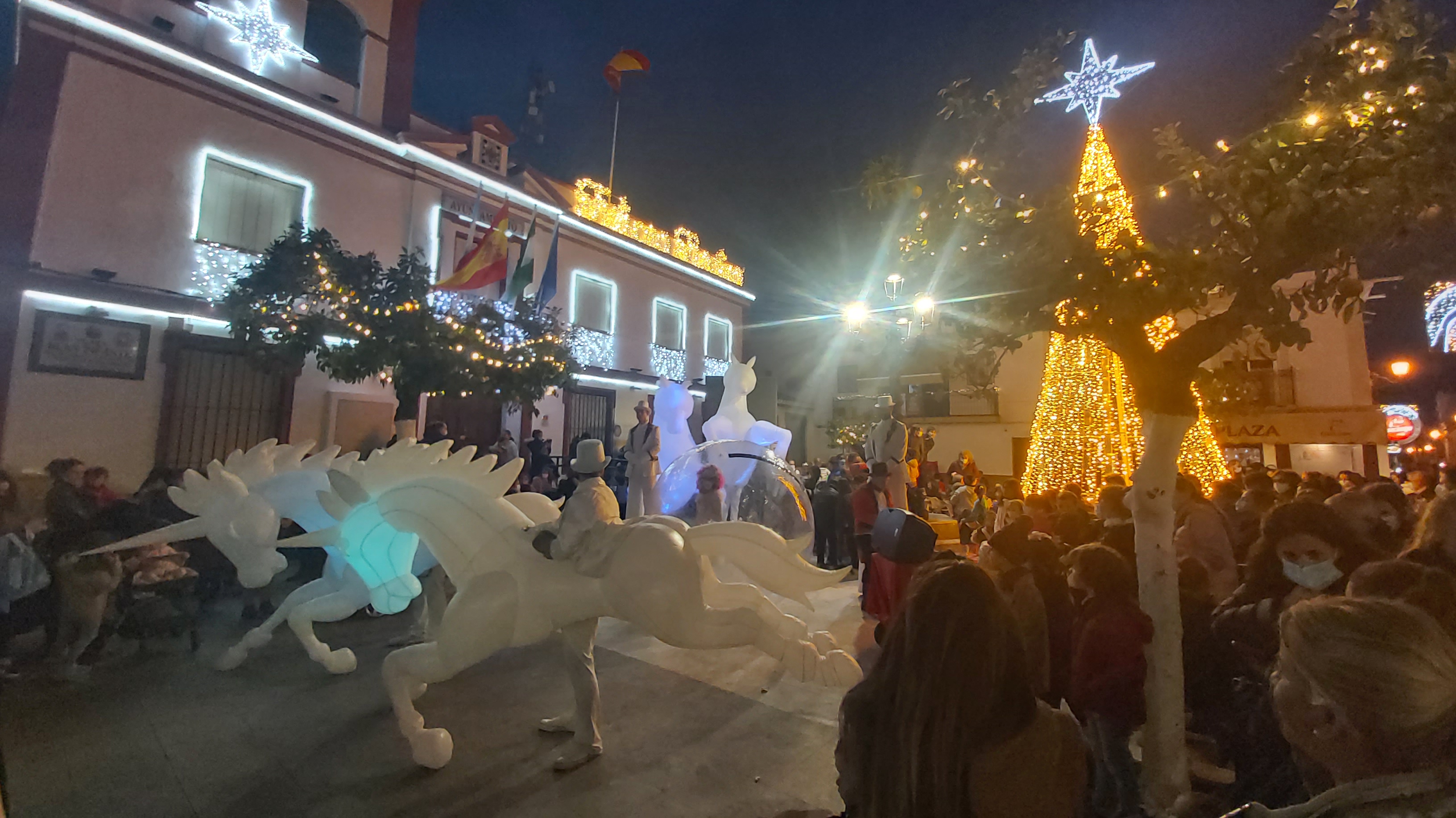 Iniciando el recorrido desde la Plaza Blas Infante, como novedad llegó hasta la Avenida Virgen del Rocío (conocida como barriada del Prado), hasta donde también se ha instalado este año por primera vez alumbrado navideño, con el objetivo por parte del Equipo de Gobierno de hacer extensivo a más rincones de nuestro pueblo la alegría que transmite la iluminación propia de las fiestas de Navidad.