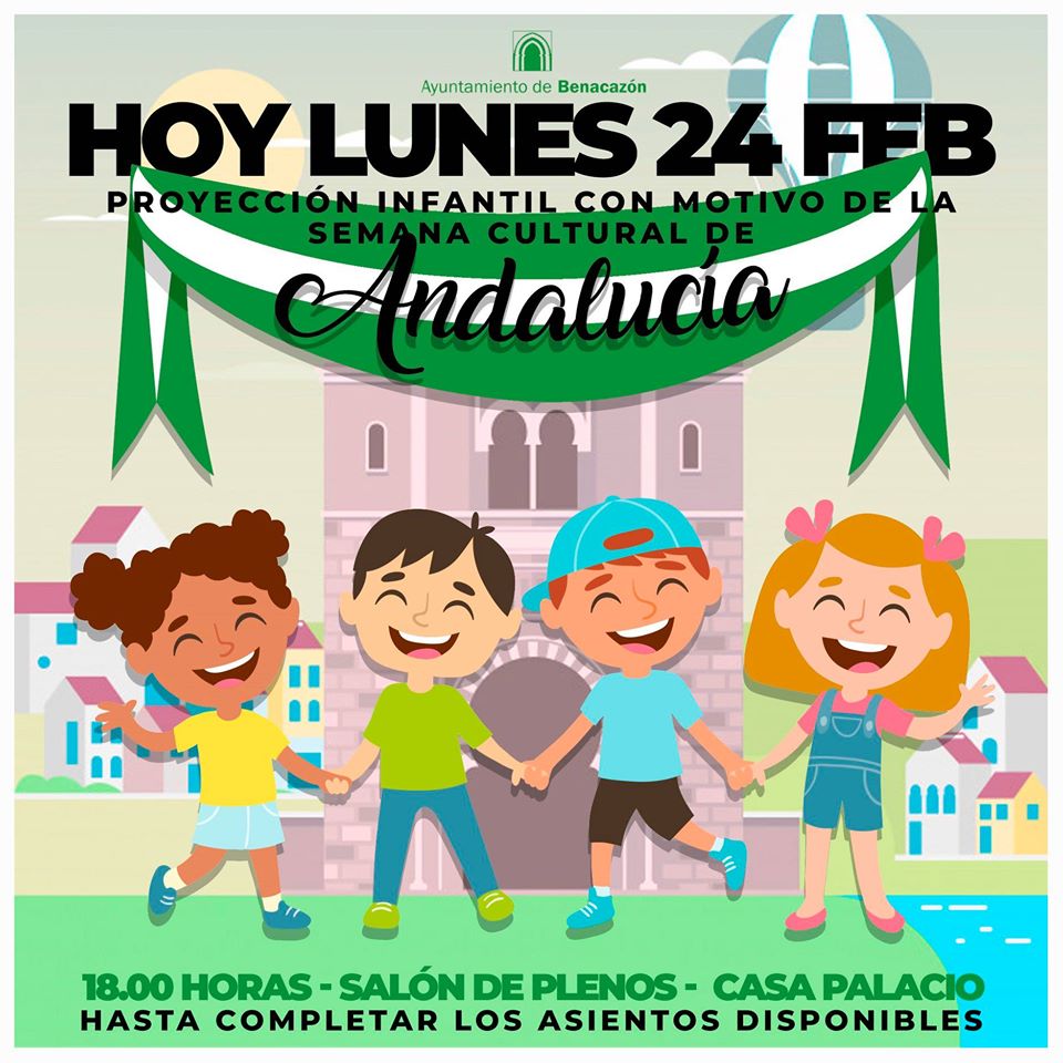 Desde el Ayuntamiento de Benacazón te informamos sobre la proyección de cine infantil con motivo de la Semana Cultural de Andalucía que organiza nuestra Área municipal de Cultura en colaboración con otras Áreas, instituciones y colectivos locales. Esta proyección para todos los públicos tuvo lugar la tarde de ayer lunes 24 de febrero en el Salón de Plenos de la Casa Palacio con una duración aproximada de una hora y media.