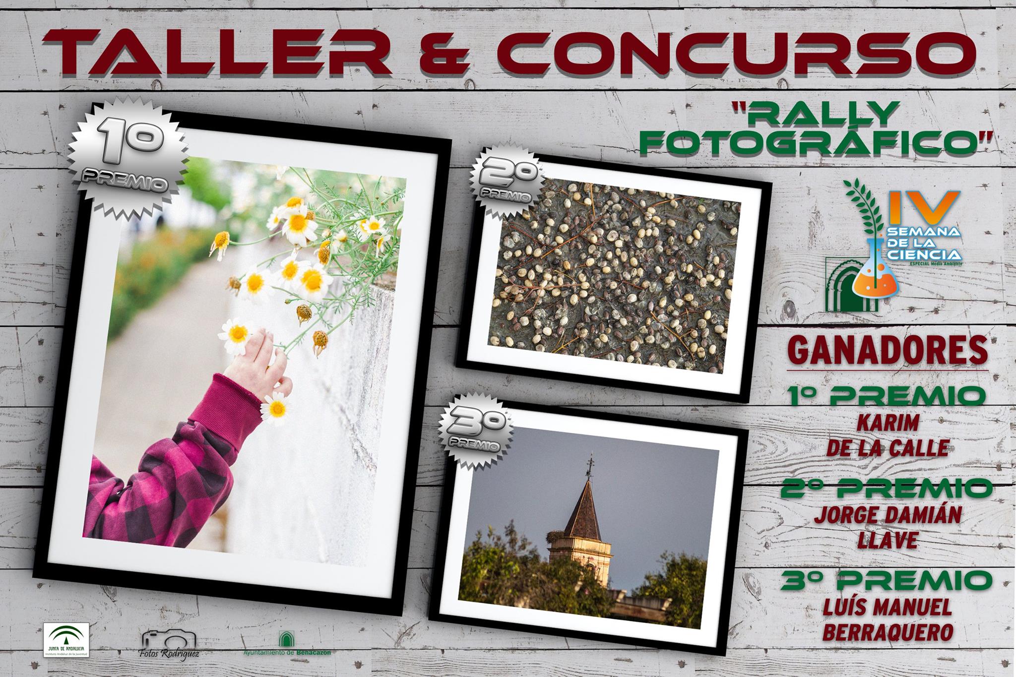 Este novedoso Taller y Concurso “Rally Fotográfico” ha significado una importante experiencia destinada a amantes de la fotografía y la naturaleza con deseos de aprender técnicas sobre cómo captar mejor el entorno urbano y natural q ue nos rodea, así como de disfrutar de una agradable tarde en compañía de otros aficionados y, de paso, participar en el posterior Concurso, cuyo acto de fallo de jurado y entrega de premios tuvo lugar el viernes 22 de Abril en el Salón de Plenos, resultando ganadores: