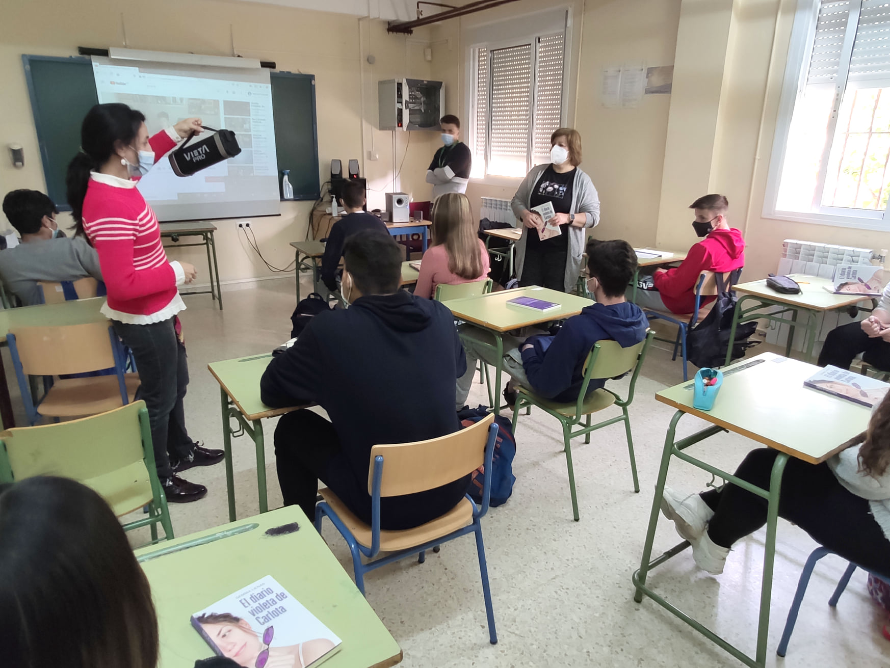 La obra literaria “El diario Violeta de Carlota” de la autora Gemma Lienas fue elegida por el equipo directivo del centro en base a varias propuestas del Área municipal de Juventud. Según su argumento “Carlota, animada por el juego que le propone su abuela, observa el mundo con las gafas violetas y comprueba que aquellas situaciones cotidianas que aprecian incuestionables resultan injustas y discriminatorias”. En lo sucesivo, nuestra ADJ desarrollará varias sesiones en las que los y las participantes leerán el libro y llevarán a cabo dinámicas y actividades relacionadas con el tema de la obra.