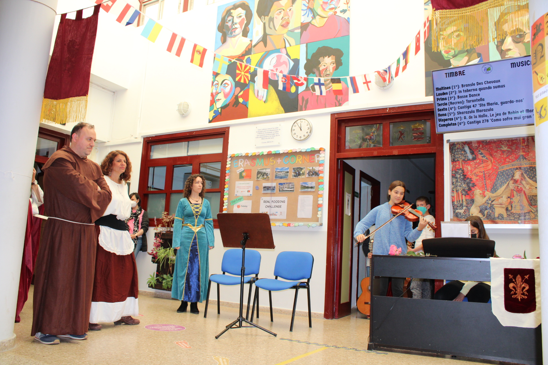 Por su parte, el Director del centro, Bruno Rivera, ha explicado que “el objetivo de las jornadas es provocar una experiencia educativa lo más inmersiva posible en la Edad Media. Para ello, hemos decorado el Centro con la temática medieval, los recreos han estado amenizados por conciertos con música de la época a cargo del alumnado, y tanto alumnos como profesores nos hemos caracterizado con ropa del Medievo. Además, se ha realizado un concurso de pruebas medievales en el que se busca la interdisciplinariedad de las diferentes materias, fomentando la participación del alumnado en el proceso de enseñanza, aprendizaje y fomento de la lectura” ha añadido Rivera.