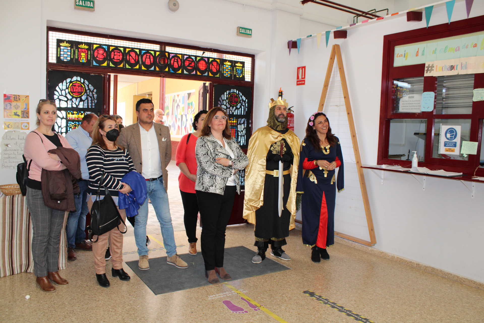 El Ayuntamiento de Benacazón informa sobre la reciente visita de la Delegada Territorial de Educación y Deporte en Sevilla, María José Eslava, acompañada por el Alcalde de Benacazón, Pedro Oropesa y la Concejala de Educación María Soledad Bautista, así como el Director del IES Virgen del Rosario, Bruno Rivera y miembros del equipo directivo y otros concejales municipales, para asistir a las Jornadas Culturales ‘Un Paseo por el Medievo’, incluidas en el Programa ‘Vivir y Sentir el Patrimonio’ celebradas del 25 al 29 de abril.