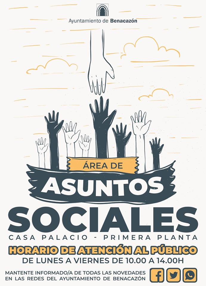 NUEVA UBICACIÓN Y HORARIO DE ATENCIÓN AL PÚBLICO DEL ÁREA MUNICIPAL DE ASUNTOS SOCIALES: DE LUNES A VIERNES DE 10:00 A 14:00 H. EN SUS NUEVAS DEPENDENCIAS DE LA CASA PALACIO (CON CITA PREVIA DESDE LAS 8:30 H.)