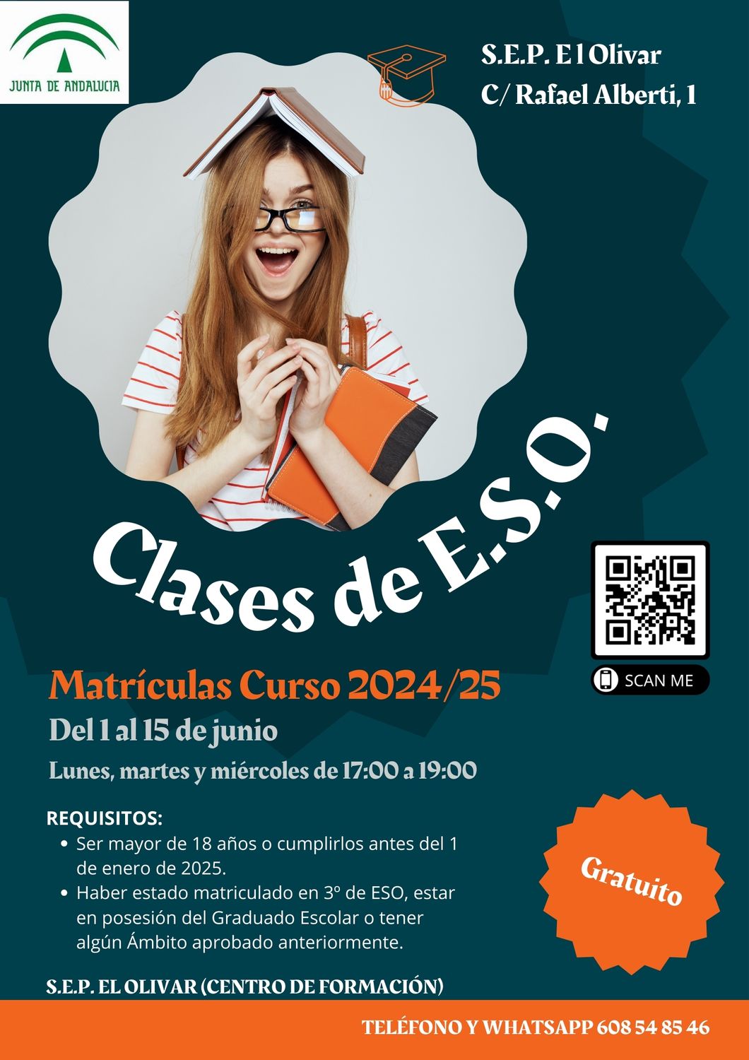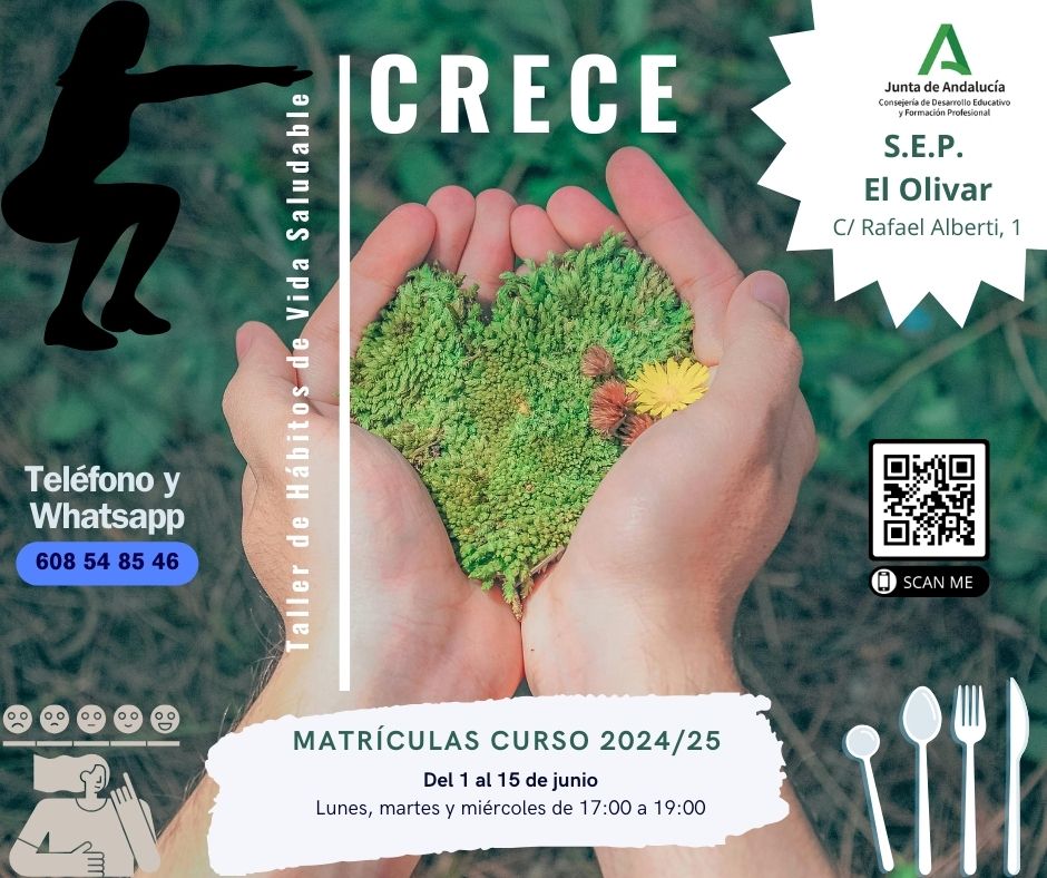 OFERTA EDUCATIVA CURSO 2024/25 CENTRO ADULTOS "EL OLIVAR": PREPARACIÓN E.S.O., TALLERES DE "MEMORIA", "INFORMÁTICA" Y "CRECE" (HÁBITOS DE VIDA SALUDABLE)