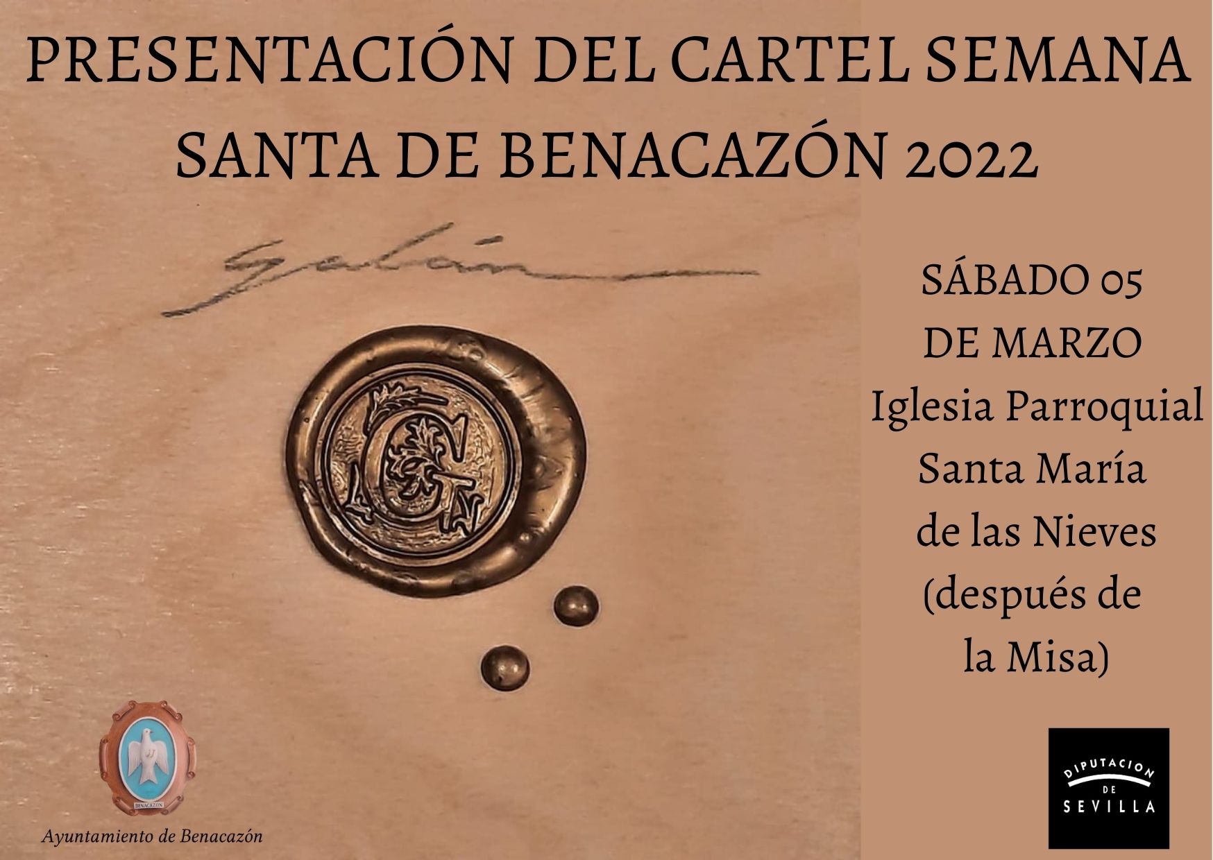 PRESENTACIÓN DEL CARTEL DE LA SEMANA SANTA DE BENACAZÓN: SÁBADO 05 DE MARZO IGLESIA PARROQUIAL