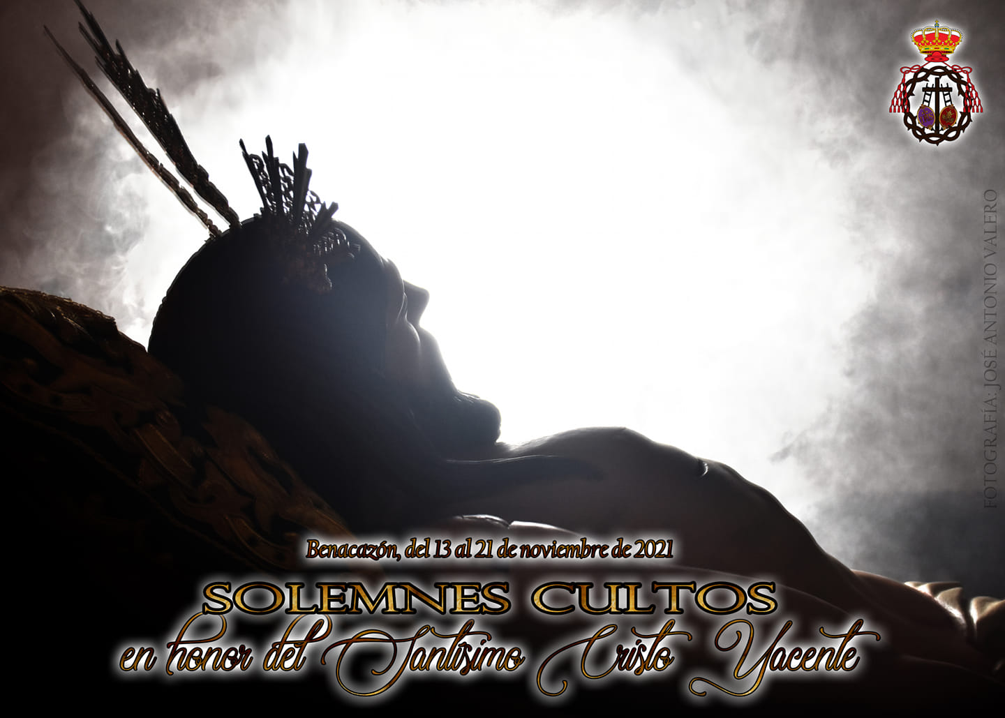 - El domingo, 21 de noviembre, Solemnidad de Cristo Rey, a las 16:15 h., TRASLADO AL CEMENTERIO CATÓLICO DE SAN JOSÉ de la imagen del Señor. A las 17:00 h., último día del Solemne Quinario y Solemne Funeral por el eterno descanso de las almas de todos los fieles difuntos de Benacazón a lo largo de su historia, oficiado por el Director Espiritual, el Rvdo. Padre D. José Antonio Morón Pardo. Finalizado el funeral, traslado de vuelta a la Capilla, discurriendo por el siguiente recorrido: Celada, Plaza de la Cruz Mármol, San Fernando, Santa María de las Nieves, San José, Santísimo Cristo Yacente y Plaza de la Constitución. Tanto a la ida como a la vuelta acompañará la Capilla Musical Gólgota de Huelva.