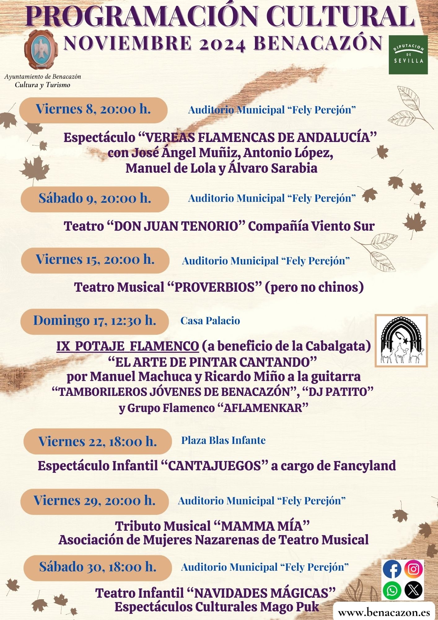 INSCRIPCIONES DEL 31 DE OCTUBRE AL 4 DE NOVIEMBRE EN EL REGISTRO GENERAL DEL AYTO. O A TRAVÉS DE SU SEDE ELECTRÓNICA en www.benacazon.es