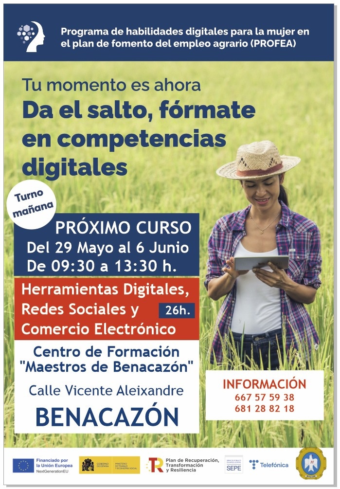 CURSO GRATUITO EN COMPETENCIAS DIGITALES PARA LA MUJER EN EL PLAN DE FOMENTO DEL EMPLEO AGRARIO: DEL 29/05 AL 6/06