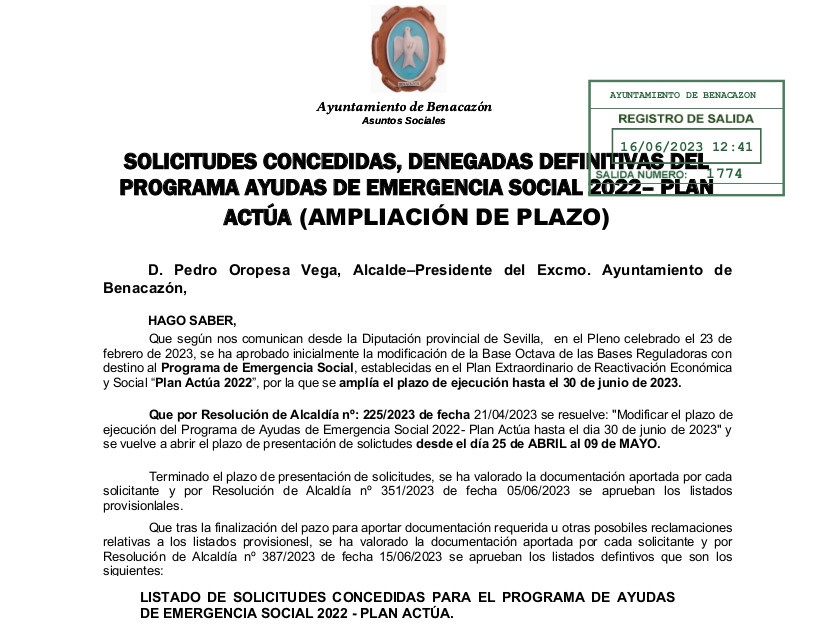 PEDRO OROPESA VEGA ELEGIDO ALCALDE DE BENACAZÓN PARA LA LEGISLATURA 2023-2027 Y CONSTITUIDA LA NUEVA CORPORACIÓN MUNICIPAL