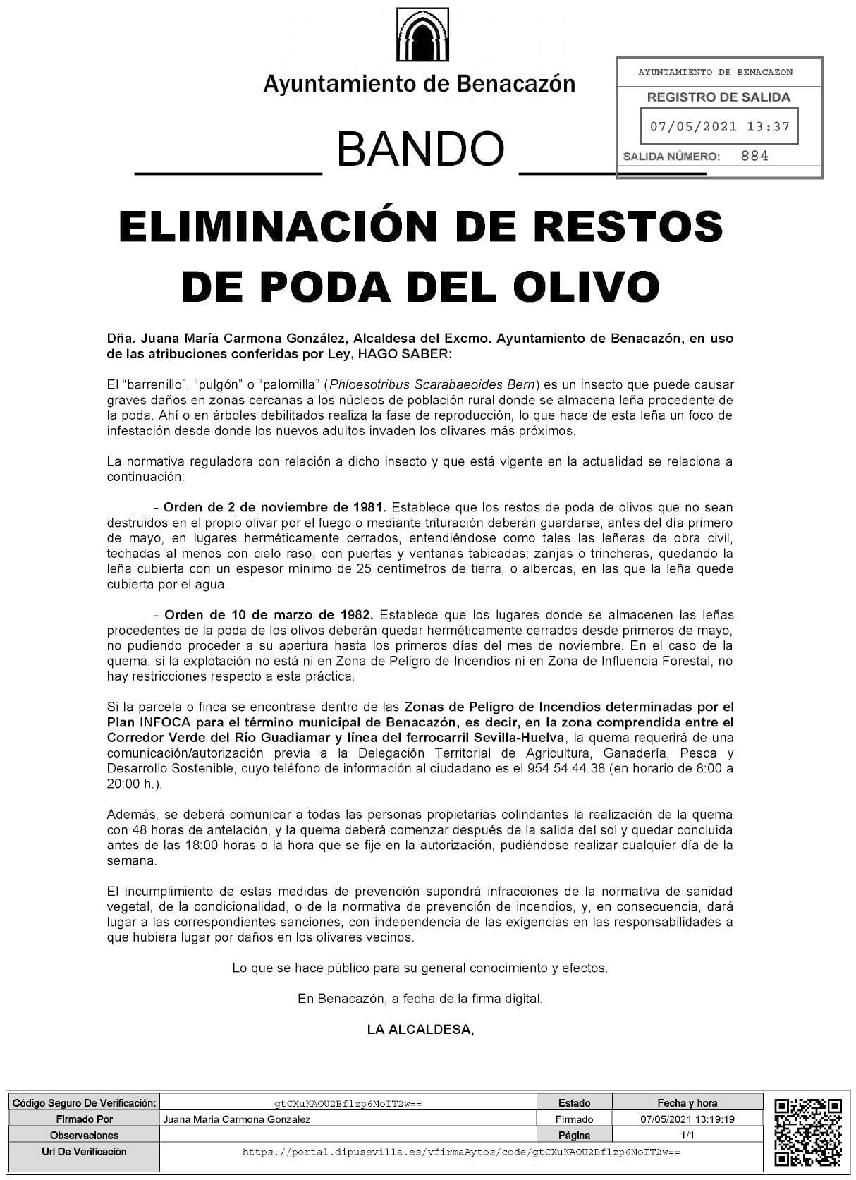 BANDO ¿ELIMINACIÓN DE RESTOS DE PODA DEL OLIVO¿