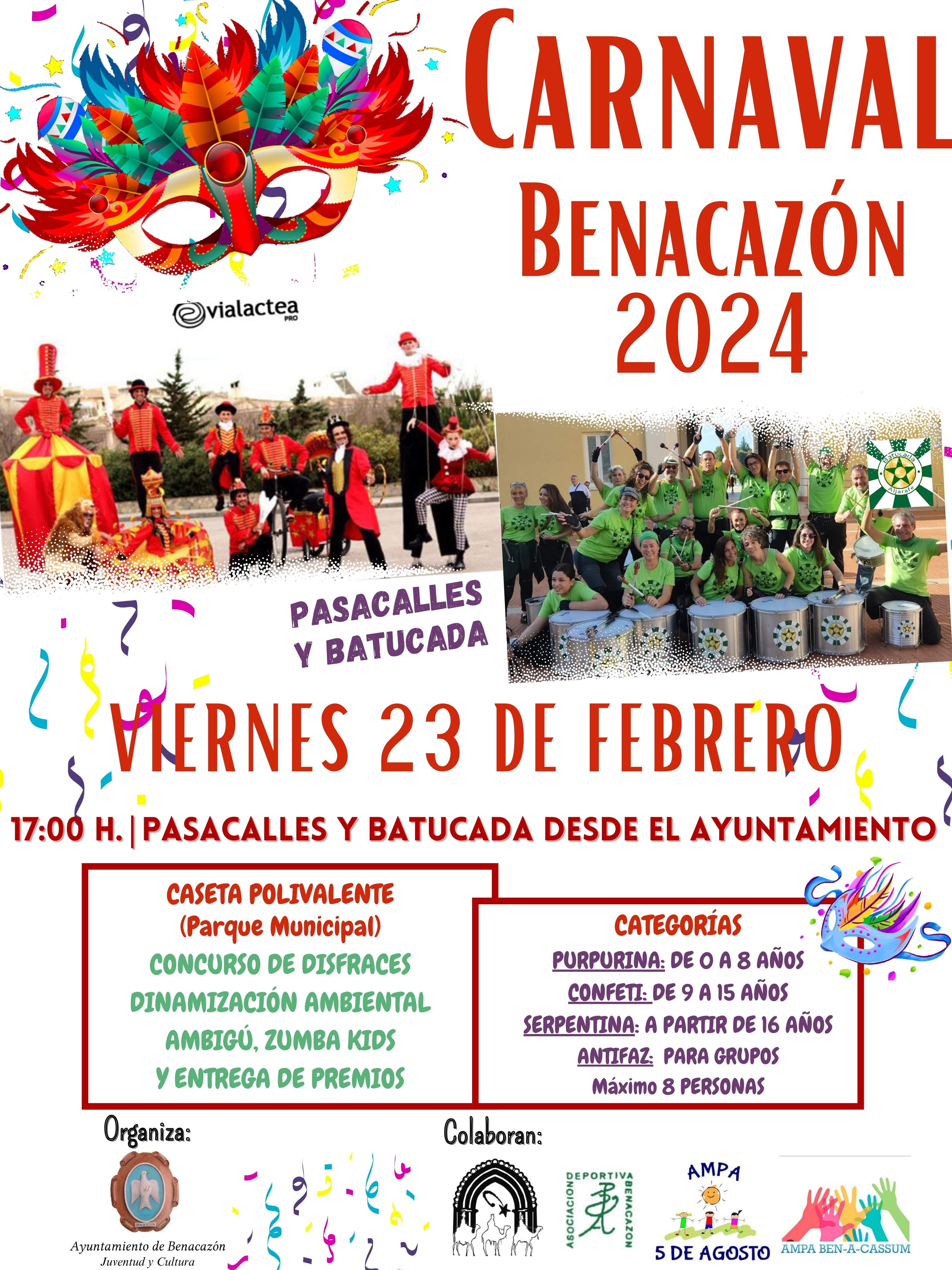 CARNAVAL 2024: PASACALLES, BATUCADA, ZUMBA KIDS Y CONCURSO DE DISFRACES. VIERNES 23 FEBRERO A PARTIR DE LAS 17:00 H.